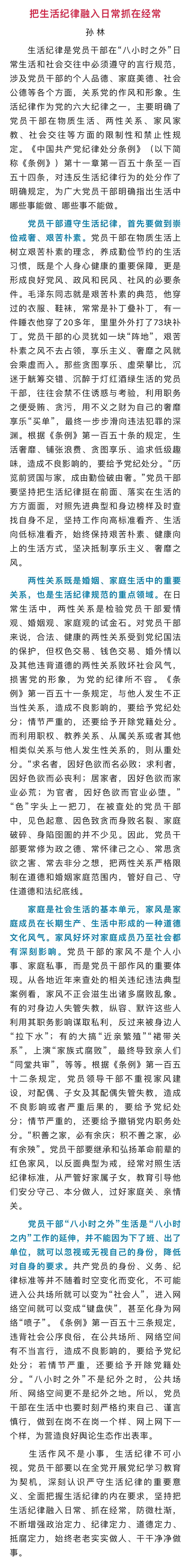 党纪学习教育 | 把生活纪律融入日常抓在经常
