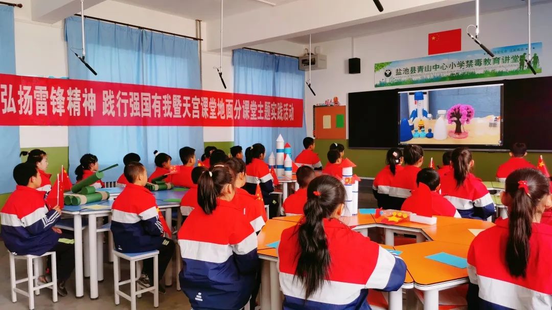 盐池县惠安堡中学、大水坑四中及青山中心小学近700名师生在各自学校通过线上方式参与了此次授课活动,并借助主办方提供的实验器材和农村中学科技馆现有科普展教设备开展了同步对比实验活动,通过天地对比实验,让学生们了解了太空冰雪实验的原理,感受到了太空抛物的精彩,通过生活中常见的材料也能完成有趣的物理实验,大大激发了他们探索宇宙的强烈兴趣。
