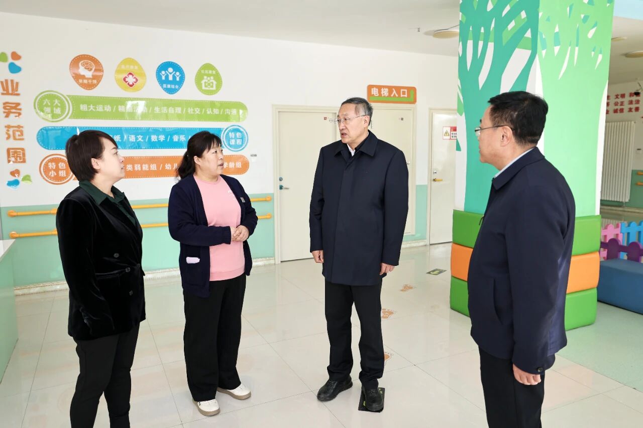 李邑飞在红寺堡区残疾人康复中心,调研残疾儿童治疗、康复和教育情况。