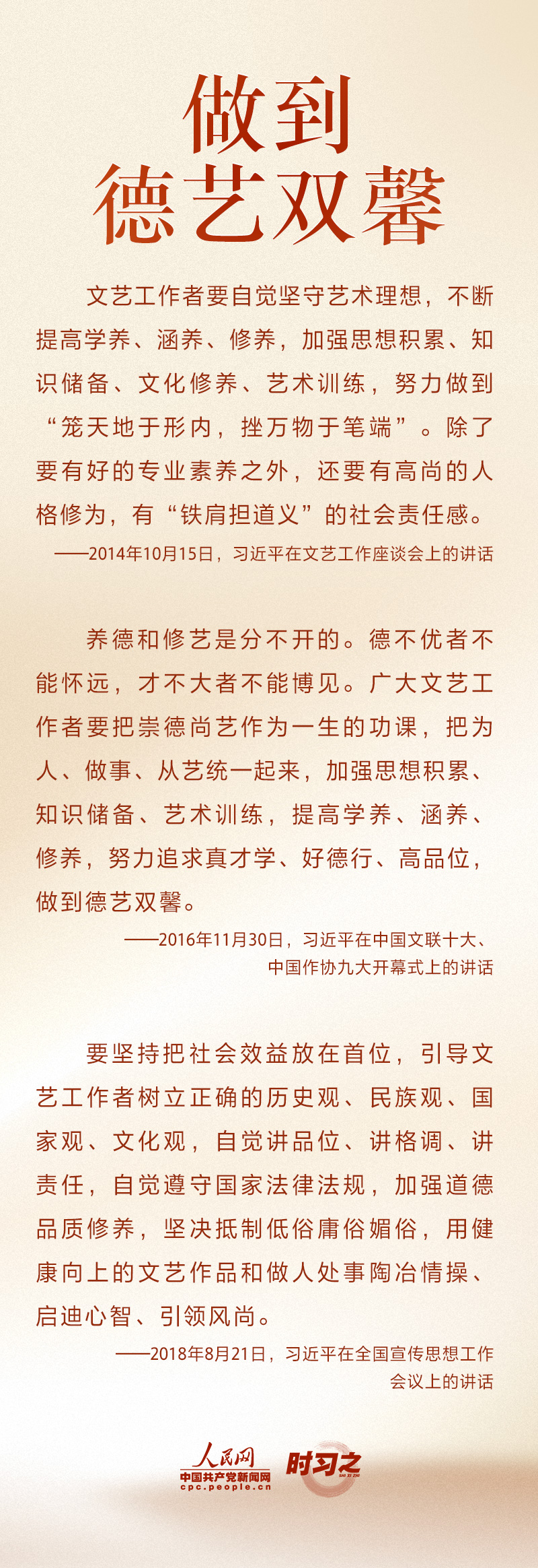 文运同国运相牵,文脉同国脉相连。新时代文艺工作者承担着记录新时代、书写新时代、讴歌新时代的重大使命。“文艺是铸造灵魂的工程,文艺工作者是灵魂的工程师。”党的十八大以来,习近平总书记不断激励文艺工作者不辜负时代召唤、不辜负人民期待,以德服人、以文化人。