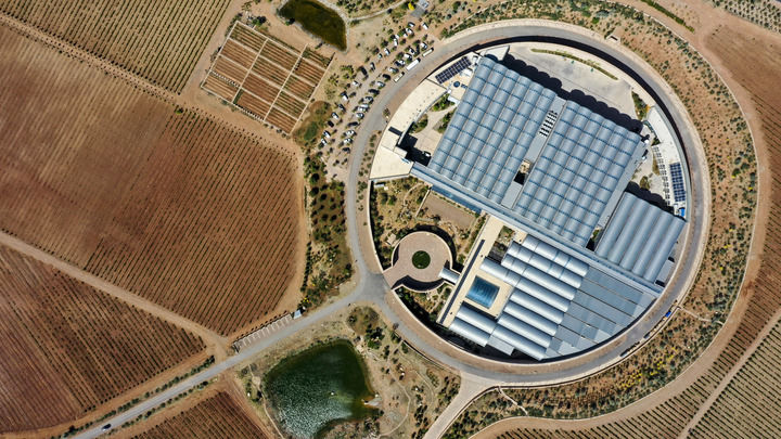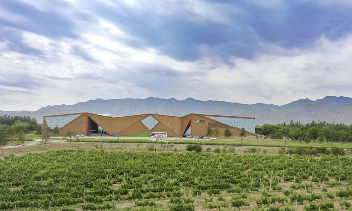 这是位于宁夏青铜峡市的西鸽酒庄(6月7日摄,无人机照片)。新华社记者 冯开华 摄