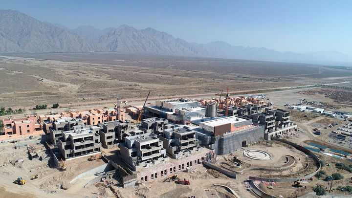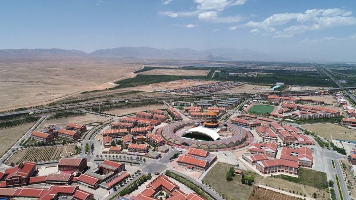 这是正在建设中的位于宁夏银川市贺兰县的图兰朵葡萄酒小镇(6月8日摄,无人机照片)。新华社记者 王鹏 摄