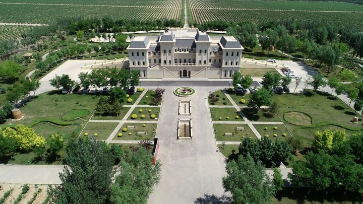 这是位于宁夏银川市永宁县的贺兰红酒庄(6月8日摄,无人机照片)。新华社记者 王鹏 摄