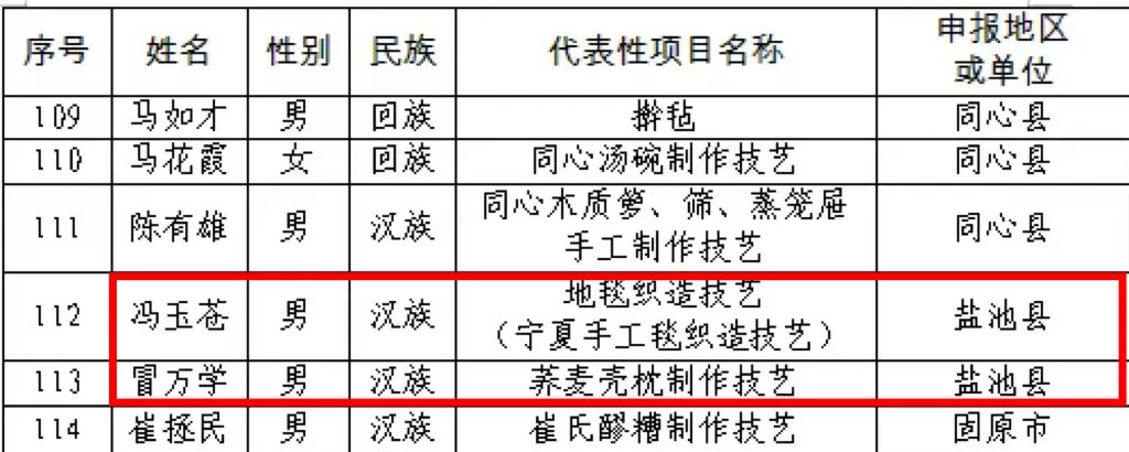 为加强非物质文化遗产传承人队伍建设,进一步提升非物质文化遗产系统性保护能力水平,保护和传承好非物质文化遗产,根据<<宁夏回族自治区非物质文化遗产保护条例>><<宁夏回族自治区非物质文化遗产保护管理办法>>等有关规定,自治区文化和旅游厅组织开展了第七批自治区级级非物质文化遗产代表性传承人认定工作。经推荐申报、材料复核、专家评审、社会公示、会议审议等程序,确定了第七批自治区级非物质文化遗产代表性传承人名单(143人,3个团体),现予公布。